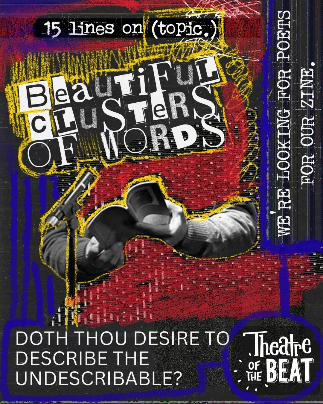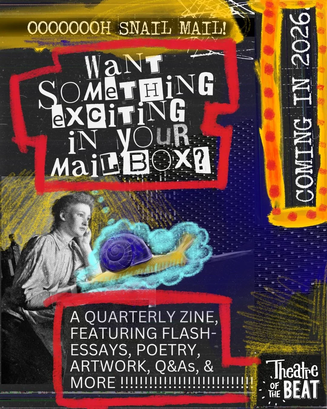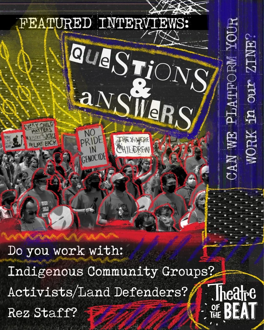 In January 2026, we’re trying something new. Theatre of the Beat will be distributing a quarterly zine across Canada. Each issue will focus on a theme of sorts, and include an essay, poetry, artwork, a Q&A with an Indigenous organization or activist, and writing prompts. The hope is that this zine will give us something to talk about, to find common ground, and to keep us connected with cross-country camaraderie!