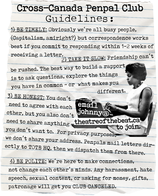 So, as a companion-piece to the zine, we’re also starting a Penpal Club: an IRL opportunity for some good old fashioned, tangible, human connection! Besides, who doesn’t love to get mail?